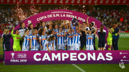 Charlamos con Cristina Pizarro 'Chini', de la Real Sociedad tras proclamarse Campeón de la Copa de la Reina.