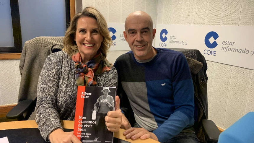 “Es muy raro que una persona con un pensamiento libre y, desde luego, no secesionista, se exprese con libertad y con inteligencia”, asegura la directora del programa, “por eso por eso saludamos hoy a Albert Soler, muy conocido entre el gremio periodístico y de forma muy estimable. Se mantiene en este difícil oficio del periodismo en Cataluña, en Girona, y concretamente escribe en el diario de Gerona desde 2002. Ahora presenta un libro muy interesante sobre éste”.