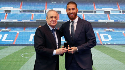 El presidente del Real Madrid, Florentino Pérez, dirigó palabras de cariño a Sergio Ramos en su despedida, tras 16 años como jugador madridista: "Gracias por agrandar la historia"