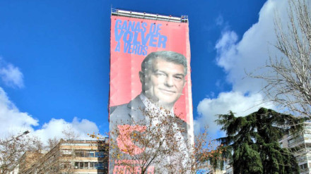 Laporta en tamaño gigante es una buena ocurrencia ¿Contraatacará el R.Madrid? ¿comprará el edificio? Me haría ilusión una foto de Florentino en la Diagonal el Día de los Inocentes