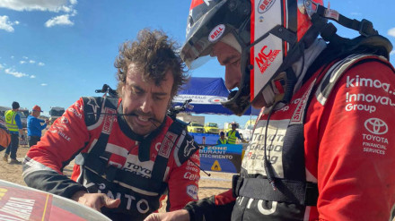 "A 150 kilómetros de meta hemos pinchado las últimas ruedas que teníamos, así que íbamos sin repuesto y fuimos despacio por precaución", aseguró Alonso.