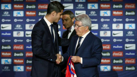 "Álvaro, no tengo que explicarte lo que significa vestir esta camiseta" señaló el presidente del Atlético durante la presentación del delantero.