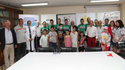 Javier Guillén, director de la Vuelta a España, le cuenta a Heri Frade la visita de los ciclistas del Caja Rural en la jornada de descanso de la ronda ciclista española (Foto: Photogomez Sport)