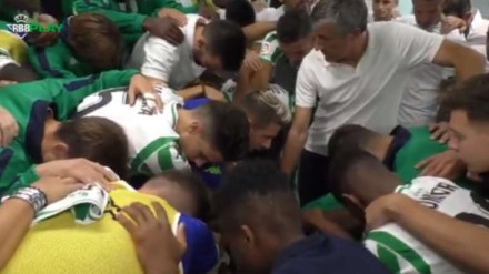 El jugador bético, que marcó el gol de la victoria, actuó de capitán y animó a sus compañeros antes del incio del partido en el Villamarín.