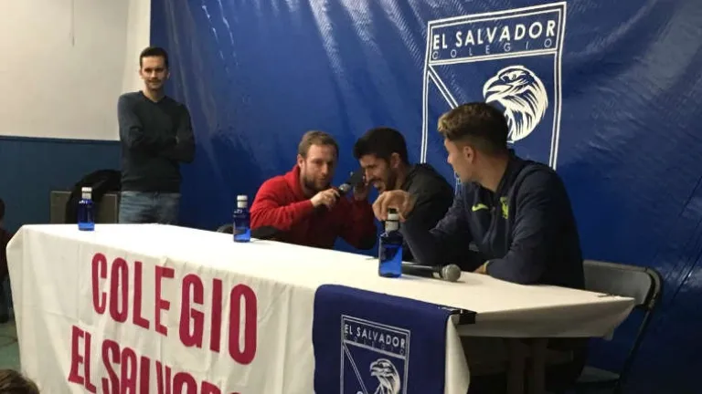 Hablamos con Nereo Champagne, portero del Leganés, y escuchamos los ánimos de los niños del colegio El Salvador animar al conjunto pepinero.