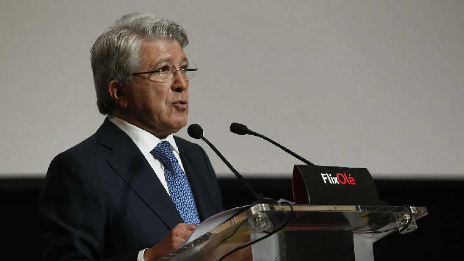 El presidente del Atlético de Madrid defendió el sistema de juego de Simeone del que dijo que "tanto él como nosotros estamos orgullosos".