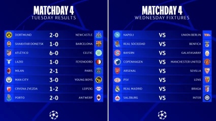 Titulares. 4ª jornada de la Champions League. El Barcelona pierde con el Shakhtar. Goleada del Atlético al Celtic. Previas de Real Madrid, Real Sociedad y Sevilla. Polideportivo.