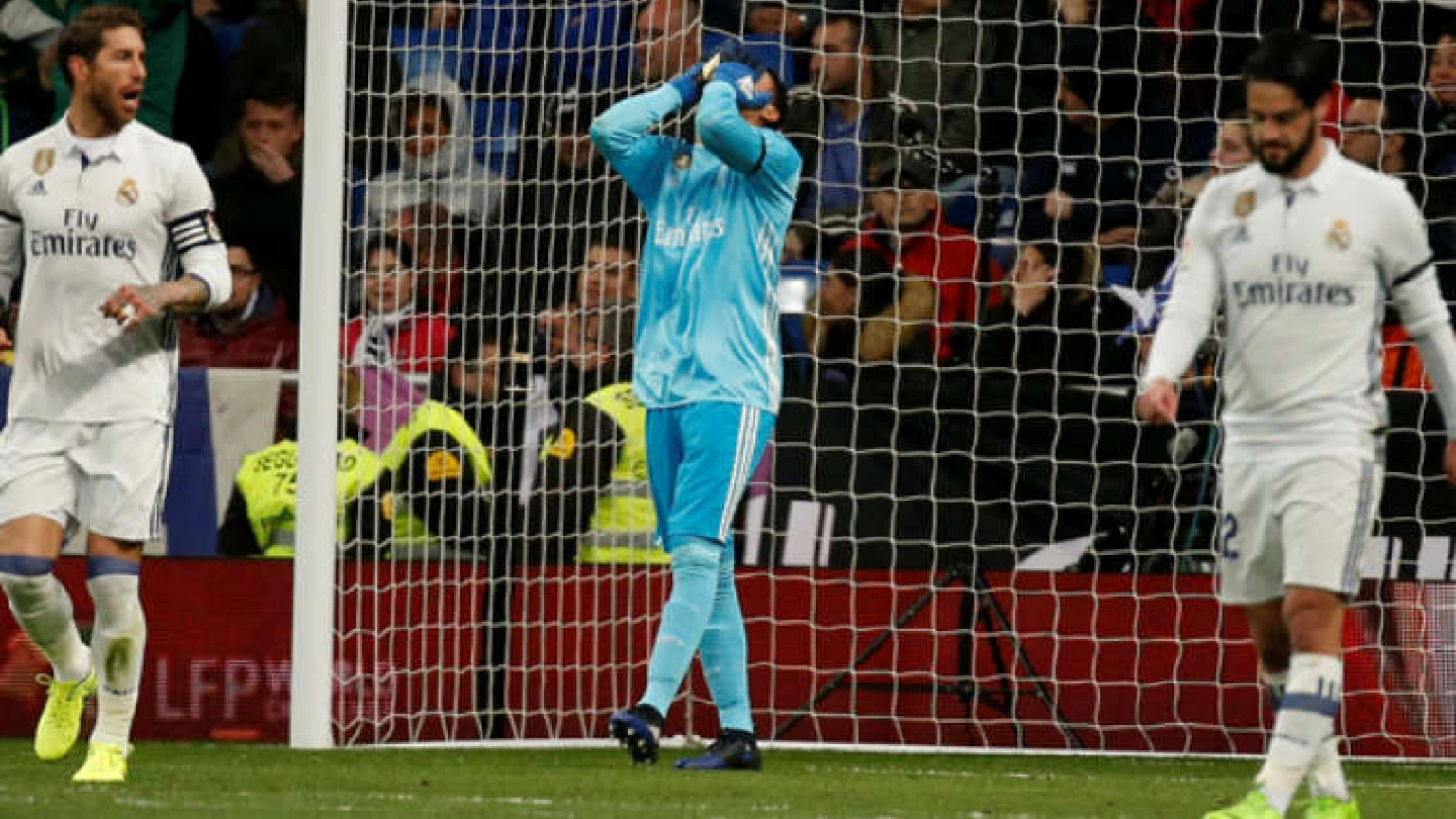 Titulares del día. Sergio Ramos vuelve a salvar al Madrid en un partido marcado por la polémica arbitral. El Barcelona cae contra el Deportivo. El Sevilla ya está en Inglaterra. El Atlético sigue preparando su choque del miércoles. Acaba la jornada con el partido Osasuna-Eibar. Polideportivo: ACB (Sergio Llull da la victoria al Real Madrid en el 'Clásico'); NBA, ciclismo, motor, tenis etc. Para terminar, el Aguanís de Tomás Guasch.