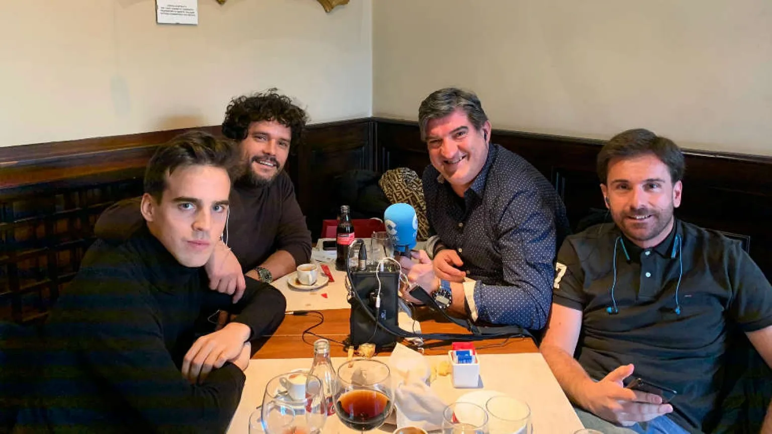 Antonio Ruiz y Rubén Martín hablan con los toreros Abellán y Caballero que se encuentran en Turín para la previa del Juventus-Atlético.