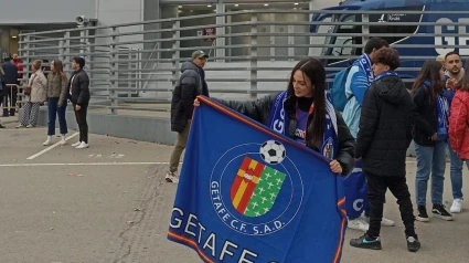 Unos 150 aficionados acompañaron al Getafe a Huesca para medirse al Tardienta. Hablamos con Natalia Ruiz, una de las presentes: "Me planté sola en Atocha y volví con 20 personas".