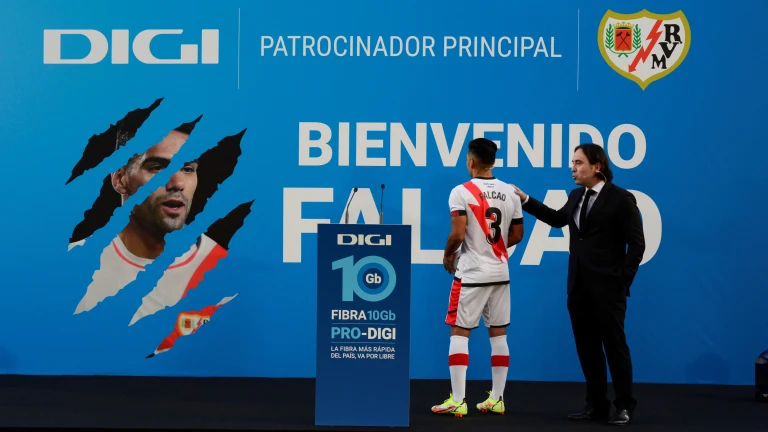 El Estadio de Vallecas abrió sus puertas para dar la bienvenida al colombiano Radamel Falcao. Gritos de "vete ya" de la afición hacia el presidente Martín Presa.