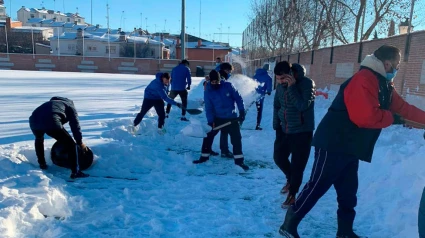 El Presidente del Navalcarnero hizo un llamamiento para quitar nieve del campo para poder jugar ante el Eibar