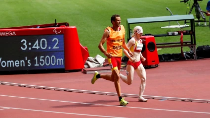 La atleta española, acompañada por su guía, se mostró muy feliz por haber disputado los Juegos Paralímpicos y, además agradeció a su familia todo el apoyo.