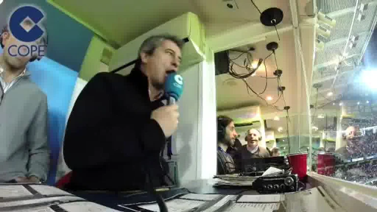 Así narró Manolo Lama el Madrid-Atlético desde la cabina de COPE en el Bernabéu