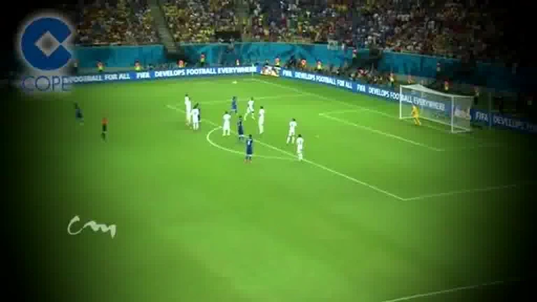Andrea Pirlo estrelló en el larguero una falta. La trayectoria que le da al balón es espectacular.