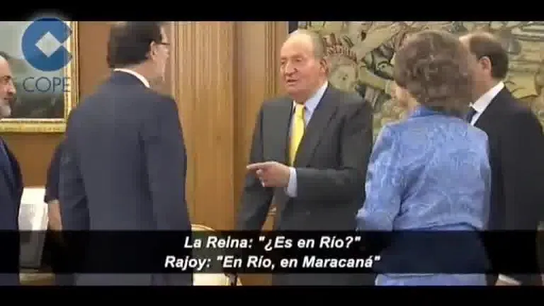 "Ya tenemos arreglado el partido de mañana", ha bromeado Rajoy, dirigiéndose a Don Juan Carlos, en alusión al encuentro que enfrentará a las selecciones de España y Chile en el mítico estadio de Maracaná de Río de Janeiro, antes de añadir, sobre las posibilidades de triunfo de España en este campeonato, que "la esperanza es lo último que se pierde". Este era el último acto de Juan Carlos como Rey de España.