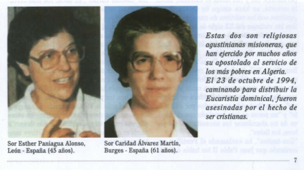 En El Espejo del 5 de febrero hemos querido recordar la figura y el testimonio de Esther Paniagua y Caridad Álvarez, agustinas misioneras asesinadas en Argelia en 1994. Para hablarnos de ellas hablamos con la Vicaria de la Provincia de San Agustín, la hermana Mª Paz Martín.