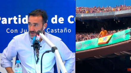 El director de El Partidazo de COPE defiende al equipo azulgrana dentro de la polémica por la retirada de una bandera de España con el escudo del Atlético de Madrid en el Camp Nou.