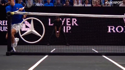 El suizo, durante su último partido de su carrera deportiva, nos dejó un golpe asombroso al pasar una bola por un agujero entre la red y el palo de la misma.
