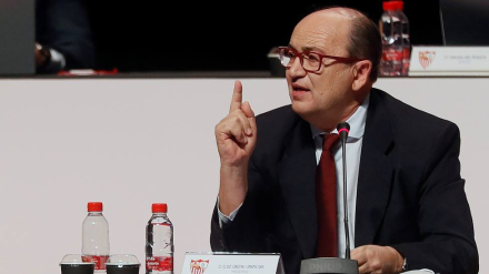 El presidente del Sevilla mandó un mensaje a los árbitros después de la derrota en el Sadar expresando que "dicen que no va a haber penaltitos y en la primera jornada ya lo hay".