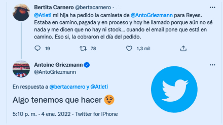 El Partidazo de COPE habló con Berta, madre de Jimena, que tuvo algunos problemas con una camiseta que compró de Griezmann por internet, y el jugador se ha ofrecido para ayudarla.