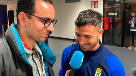 El autor del 0-2 del Real Oviedo en Ipurua frente al Eibar, con Juanma Castaño: "Es normal que nadie te diga quién quiere en la final. Yo solo te digo que veré el partido".