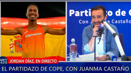 Juanma Castaño entrevistó a Jordan Díaz poco después de ganar la medalla de oro en el triple salto del campeonato de Europa.