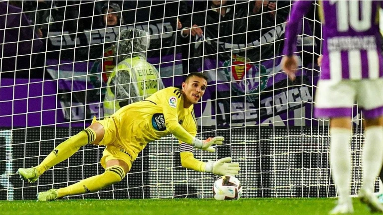 El portero del Valladolid fue el protagonista en el partido ante el Celta al detenerle dos penaltis a Iago Aspas tras mandarlo repetir el VAR.