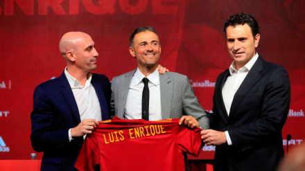 Luis Enrique, presentado como seleccionador, critica a Robert Moreno. 'Vaya Fiesta', con el Grupo RISA.