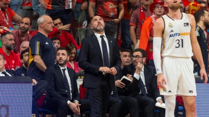 El Real Madrid logró su liga número 37 de baloncesto tras ganar en el tercer partido al UCAM Murcia y Juanma Castaño entrevistó a Chus Mateo para felicitarle por la gran temporada: "No hay que hacer mucho ruido, hay que tener un perfil adecuado. Las verdaderas estrellas son los jugadores, tengo un grupo de trabajo enorme que trabaja a diario con mucha honestidad y estoy muy orgulloso de ellos. Nuestro trabajo es estar en la sombra y cuando se nos necesita".