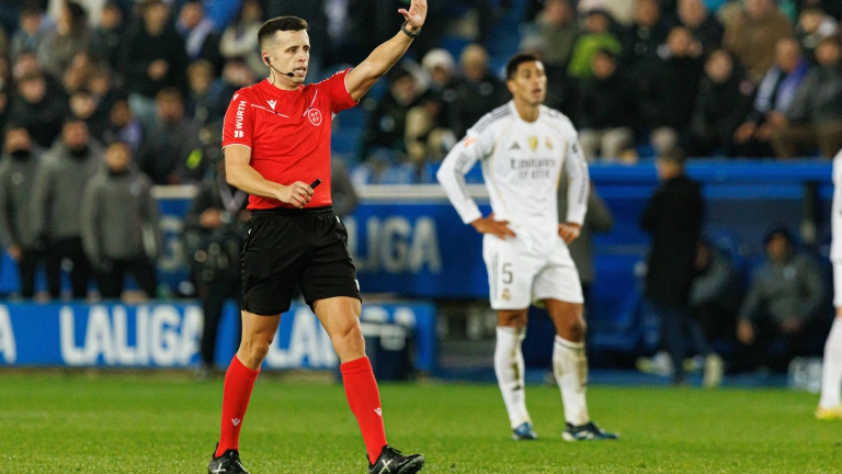 El colegiado García Verdura, durante el Alavés-Real Madrid