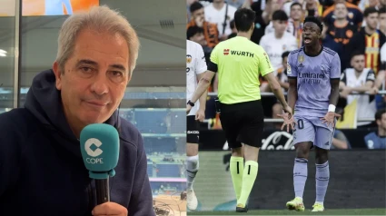 Casi un año después, Vinicius y el Real Madrid vuelven a Mestalla para enfrentarse al Valencia en LaLiga. Se espera un encuentro de alta tensión y Manolo Lama dejó claro en El Partidazo de COPE lo que va a pasar en el enfrentamiento. "Creo que el Valencia y la comisión de seguridad que ha declarado el partido de alto riesgo estoy seguro de que trabajarán a destajo, dentro y fuera, para que al cafre que se le ocurra escupir por la boca un insulto racista esté al minuto localizado y a los dos minutos en la trena. Ahora, de que el partido va a ser caliente, estoy convencido", explicó el narrador.