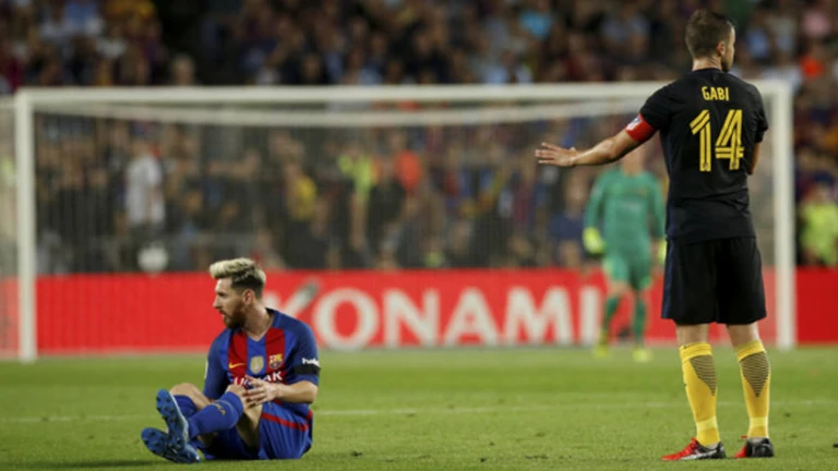 Messi, lesionado ante el Atlético de Madrid (REUTERS)