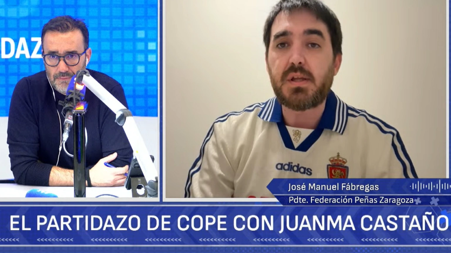 José Manuel Fábregas, presidente de la Federación de Peñas del Real Zaragoza, ha intervenido en el programa para dar voz a una afición desesperada. Lejos de ser pesimista, se ha definido como "realista" y ha pronunciado una demoledora sentencia: "La gestión del Real Zaragoza en estos últimos 4 años es lo que le va a llevar a Primera Federación, salvo un milagro de la Virgen del Pilar".