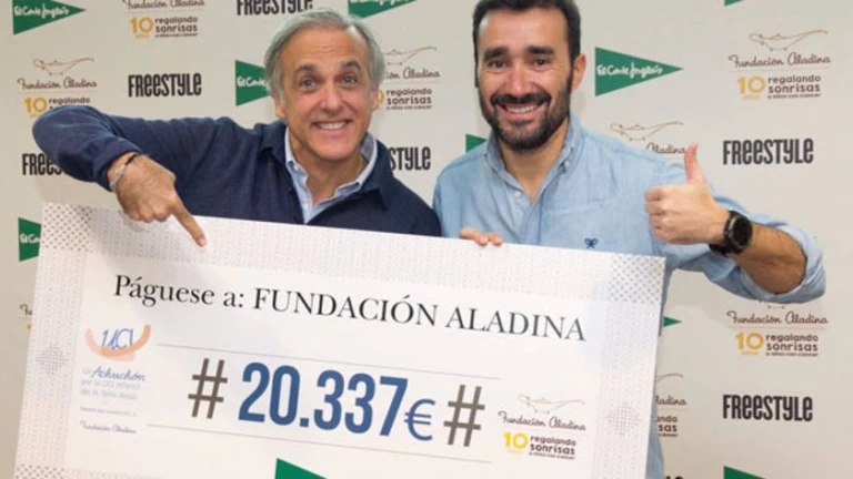 Juanma Castaño hizo entrega del cheque del Corte Inglés a la Fundación Aladina.