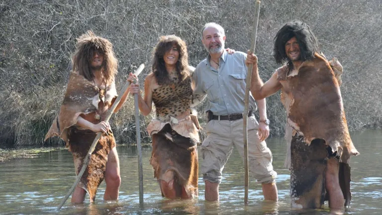 “Tanto los perros como nosotros somos animales a los que nos encanta la primera nevada porque todo se convierte en un refrigerador lleno de carne porque los ciervos ya no pueden correr, porque tienen las patas finas, entonces se quedan atrapados en la nieve y los podemos cazar más fácilmente, y además podemos usar el fuego, que nos hizo los dueños del mundo”, explica con entusiasmo Mirones.
