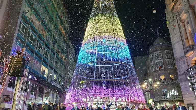 Vamos a Vigo, la ciudad más iluminada de nuestro país en Navidad, con 350 las calles decoradas, 3.000 motivos lumínicos y 1.000 árboles iluminados y, entre los puntos destacados, se incluyen desde el típico árbol a un castillo, una noria, un muñeco de nieve de 3 metros, un regalo gigante o una inmensa bola.