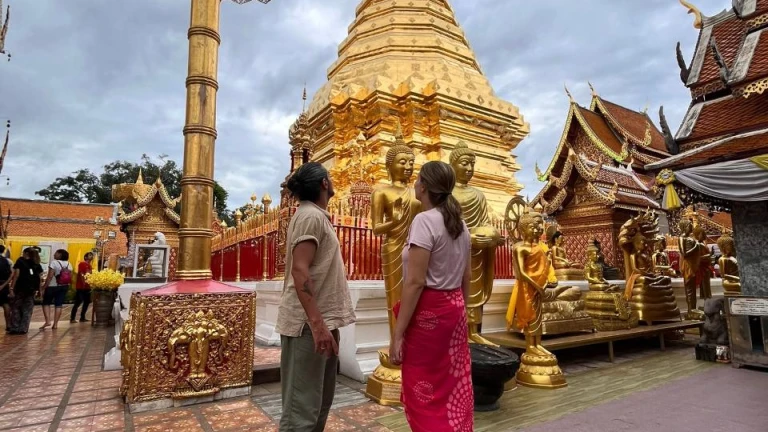 Por otra parte, en el norte de Tailandia también podemos encontrar auténticas maravillas. Sin duda, las dos ciudades más conocidas son Chiang Mai y Chiang Rai: “En el caso de Chiang Mai, hay turismo de templos. Allí fuimos a un templo maravilloso que se llama Doi Suthep, que tuvimos la oportunidad de llegar justo en el momento en el que los monjes comenzaban a cantar sus mantras”. Y en Chiang Rai hay un templo que es visita obligada: “El Templo Blanco que hay una zona que a nosotros nos gustó mucho, porque es una de estas esquinas perdidas de los mapas que es el Triángulo Dorado, porque en un punto determinado tú puedes ver dos países más; estás en Tailandia pero justo enfrente al otro lado del río Mekong estás viendo Laos y también estás viendo Myanmar”.
