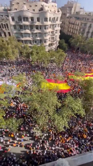 Todo un éxito ha sido esa concentración convocada por Sociedad Civil Catalana bajo el lema "no en mi nombre". En esta manifestación está presente el líder del PP Alberto Núñez Feijoo, y el líder de VOX Santiago Abascal. Una manifestación en la que se estima, según contaba Yolanda Canales, desde COPE Barcelona, hay unas 300.000 personas. Eso sí, la Guardia Urbana de Barcelona lo cifra en unas 50.000 personas.