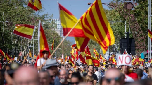 Protestaban, encabezada por Sociedad Civil Catalana, y a la que han acudido muchos políticos, contra la amnistía que previsiblemente otorgará el Gobierno a los separatistas y contra un posible referéndum de autodeterminación. En Fin de Semana hemos hablado con Álex Ramos, de Sociedad Civil Catalana, quien aseguraba que "hay muchas ganas de movilización" por parte de gran parte de los catalanes.