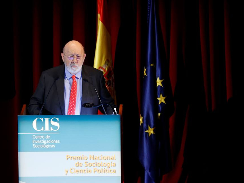 MADRID, 10/11/2021.- El presidente del Centro de Investigaciones Sociológicas y presidente del Jurado de los Premios Nacionales de Sociología y Ciencia Política 2019 y 2020, José Félix Tezanos, ofrece un discurso durante la entrega de los Premios 2019 y 2020 celebrada en Madrid, este miércoles. EFE/ Javier Lizón