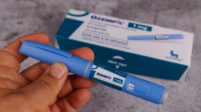 Una mano que sostiene una jeringuilla de inyección de Ozempic (0,5 mg), con otras jeringuilla en el fondo, simboliza el control de la diabetes