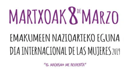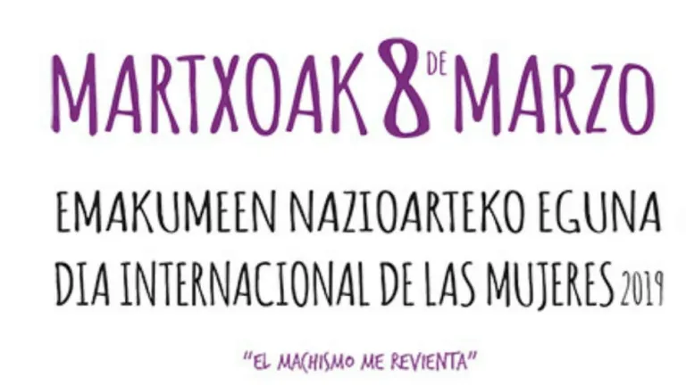 - Hoy te recomiendo consultar mi blog, donde he colgado un cartel estremecedor. Es el cartel ganador del concurso del Ayuntamiento de Ermua para celebrar el 8 de marzo. En él puede verse el dibujo de una sirvienta muy años 50, con su vestido negro y delantal blanco, que guiña un ojo, mientras ofrece una bomba con la mecha encendida. Ermua, no digo más.