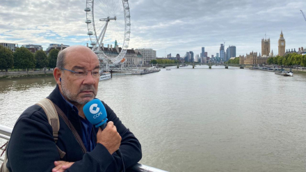 El director de 'La Linterna' ha realizado su conexión de 'El Tron' en "Herrera en COPE" antes de volver a España tras asistir al último adiós a Isabel II