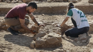 Imagen de recurso de un grupo de arqueólogos sobre unas ruinas