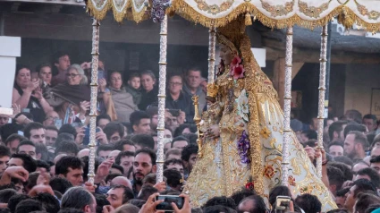 A estas horas estaría la Virgen del Rocío por su aldea a hombros de los almonteños.