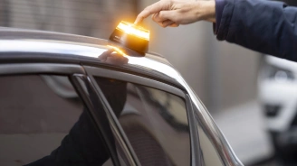 Baliza V16 encendida encima de un vehículo