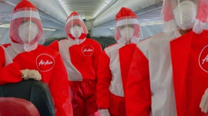 Los nuevos uniformes de la tripulación de AirAsia: manga larga, capucha y mascarillas