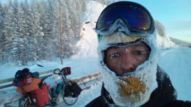 Un zaragozano cruza Siberia en bici a 50 grados bajo cero