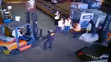 Como el cargamento era pesado, utilizaron a empleados del aeropuerto y unas carretillas para subirlo a una de las camionetas que llevaban.